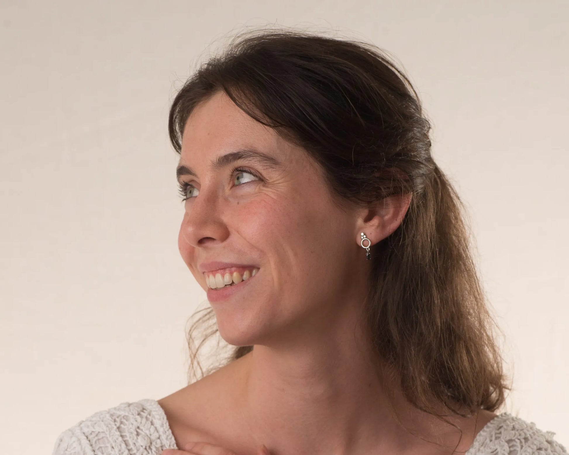 Para descubrir más sobre su historia, visita Inspiración Aro Espiral, Pendiente Esencia y Set de Piercing en el menú Historia.